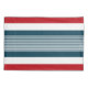 Design náutico com decoração em forma de bússola, em fundo listrado a azul, vermelho e branco