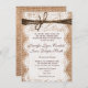 Use este modelo de convite para design nos convites para casamento no estilo do seu país. Basta adicionar seus detalhes de casamento aos pontos de modelo. O design é um design de burlap IMPRESSO com rendas e fio IMPRESSOS. É um convite impresso plano, não um tecido real.