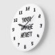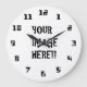 Design seu próprio relógio de parede redondo (grande) usando o Modelo de Números de horas negras com a incrível ferramenta de personalização de Zazzle.