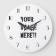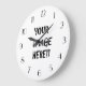 Design seu próprio relógio de parede redondo (grande) usando o Modelo Black Hour Numbers com a incrível ferramenta de personalização do Zazzle.