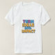 A imagem mostra um design de camiseta com o texto "Transformar ideias em impacto" em várias cores. O texto está estilizado com uma fonte ousada e lúdica que combina uma mistura de cores primárias e secundárias. Cada letra é esboçada em preto, e uma pequena sombra é feita por baixo para adicionar profundidade. A frase é centrada na camiseta, com as cores vibrantes criando sentido de energia e positividade. A design é simples, mas atraente, que visa transmitir uma mensagem de empoderamento e encorajar a autocrença. Destina-se a ser impresso numa t-shirt preta.