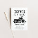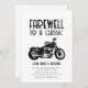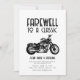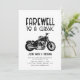 Se você ama simples, este simples convite de estilo é certo para você. O convite apresenta um design elegante, com um fundo branco suave com uma motocicleta vintage No centro, os detalhes da festa são lindamente escritos em uma fonte vintage de bloco preto, exuindo um ar de sofisticação. Bem-vindos convidados e honrem sua aposentadoria, com este convite de festas de aposentadoria. A cor e o texto em segundo plano são editáveis.