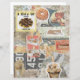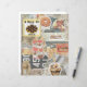 Design de estilo de diário de lixo. Ephemera, Decoupage, Colagem, Bolo, Deserto, Comida, Café, Spoon, Floral, Carimbos, Papel, Delicioso, Iumã, Números, Palavras