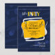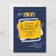 Um convite contemporâneo e abstrato com bolinhas, fundo azul e um ponto focal central dourado e branco. Design por Freepik.com.<br/><br/>O cartão é fácil de personalizar com sua redação, fonte e cor da fonte.<br/><br/>Não é exatamente o que você está procurando? Todos os nossos produtos podem ser personalizados para atender às suas necessidades sem custo adicional.<br/><br/>Basta entrar em contato conosco em askcottonlamb@gmail.com.<br/><br/>Produtos coordenados disponíveis: Basta perguntar!