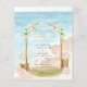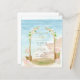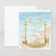 Lindo convite de casamento (ou cartão "salve o dia") com ilustração em aquarela tema praia, perfeito para seu casamento de verão, cerimônia de casamento, recepção de casamento. Você pode gerar seu próprio código de leitura QR e adicioná-lo no verso para que os convidados respondam e acessem seu site de casamento usando as ferramentas de personalização da Zazzle. Você também pode remover o texto ou a imagem no verso e adicionar outra foto do noivado para criar um souvenir de casamento único para o álbum de fotos de casamento dos seus convidados. Para dicas de planejamento de casamento, guias impressos gratuitos e downloads digitais, visite www.lowbudgetwedding.network.