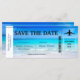 Uma imagem tropical à beira-mar é o fundo para este Passagem Aérea Destino casamento Save the Date.