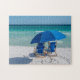 Quebra-cabeça de Jigserra com um casal de cadeiras de salão e um guarda-chuva para alguém ocupá-las na praia branca de Destin, na Flórida. Procurando mais produtos? Visite minha loja: http://www.zazzle.com/timelessmomentsphtgy Foto tirada por Jennifer White com Fotografia Moments Eterno. Todas as imagens são protegidas por direitos autorais.