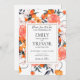 Cartão plano de convite para casamento em laranja floral e branco com informações detalhadas