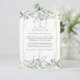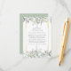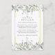 Folhas bonitas de salvia e lilás caem sobre uma moldura dourada elegante que envolve os detalhes da informação dos seus convidados em texto clássico e elegante. Criado por Thisisnotme©