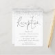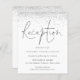 Um alternativo de 4,5 pol x 5,6 pol com preço inferior. Disponível em um STOCK DE CARTÃO SEMI GLOSS 110 lb, que é a opção padrão (recomendada para convites), OU um STOCK DE PAPEL THINNER SATIN FINISH 80 lb (ideal para gabinetes). Os envelopes são um extra opcional e são ligeiramente maiores que o tamanho da placa. Recepção de casamento do Silver Glitter do Orçamento. Um roteiro elegante para o título e o resto do texto que você pode personalizar facilmente.
