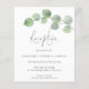 Um valor para o alternativo do ORÇAMENTO em tamanho menor de 4,5 x 5,6" de semirbrilho de 110 lbs, que é de espessura semelhante a um cartão postal (no entanto, não é adequado para uso como cartão postal). POR FAVOR, OBSERVE QUE HÁ UM convite por folha. Detalhes modernos da Recepção de casamento Eucalyptus. Um roteiro elegante para o título e o resto do texto que você pode personalizar facilmente com as elegantes folhas de eucalipto no topo.