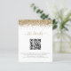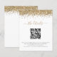 Um valor para alternativo do ORÇAMENTO em um tamanho de 4,5 x 5,6 pol de semirbrilho de 110 lbs, que é de espessura semelhante a um cartão postal (no entanto, não é adequado para uso como cartão postal). POR FAVOR, OBSERVE QUE HÁ UM convite por folha. Detalhes de Casamento de Código QR do Código de Glitter Dourado de Orçamento. Uma borda falsa com brilho na parte superior de ambos os lados com um script elegante com traços para o cabeçalho. Troque o seu código QR para o seu website de casamento por uma forma conveniente para que os seus convidados vejam todos os detalhes de que necessitam. Para criar um código QR, pesquise online "gerar um código QR"