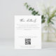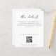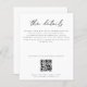 Um valor para o alternativo do ORÇAMENTO em tamanho menor de 4,5 x 5,6" de semirbrilho de 110 lbs, que é de espessura semelhante a um cartão postal (no entanto, não é adequado para uso como cartão postal). POR FAVOR, NOTE que existe UM por folha. Detalhes do Casamento de Orçamento Gabinete de Script de Código QR. Avise aos seus hóspedes os detalhes como instruções e informações de alojamento para o seu casamento quando enviar os convites. Este design elegante definiu na moda grande tipografia para o título Os detalhes e o resto do texto podem ser facilmente personalizados para as suas palavras juntamente com o seu código QR no website. Você pode remover o código QR se desejar por meio da custódia. Você pode escolher qualquer cor de sua escolha para o texto e as cores de fundo em ambos os lados, por meio da opção personalizar mais.