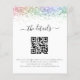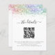 Um valor para alternativo do ORÇAMENTO em um tamanho de 4,5 x 5,6 pol de semirbrilho de 110 lbs, que é de espessura semelhante a um cartão postal (no entanto, não é adequado para uso como cartão postal). POR FAVOR, OBSERVE QUE HÁ UM convite por folha. Detalhes de Casamento do Código QR do Arco-Íris de Orçamento. Uma borda brilhante multicolorido falsa no topo de ambos os lados com um script elegante com alternâncias para o cabeçalho. Troque o seu código QR para o seu website de casamento por uma forma conveniente para que os seus convidados vejam todos os detalhes de que necessitam. Para criar um código QR, pesquise online "gerar um código QR"