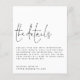 Gabinete de Detalhes do Casamento Branco Preto. Um alternativo de 4,5 pol x 5,6 pol com preço inferior. Disponível em um STOCK DE CARTÃO SEMI-GLOSS 110 lb, que é a opção padrão (mais espesso para convites), OU um STOCK de PAPEL THINNER FINISH 80 lb FINISH (ideal para gabinetes). Os envelopes são um extra opcional e são ligeiramente maiores que o tamanho da placa. O cabeçalho está em um estilo elegante de escrita manual com os detalhes abaixo e muito espaço em branco em forma quadrada para um estilo contemporâneo. Personalize facilmente com seus próprios detalhes.