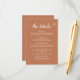 Cartão de Detalhes do Casamento, em tema cobre ferrugem terracota marrom, onde você pode incluir o seu recebimento de casamento, opções de acomodação, seu site de casamento e outros.