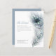 Uma alternativa de orçamento com bom custo-benefício em um tamanho menor 4,5 x 5,6” semi-brilho 110lbs de peso, que é de espessura semelhante a um cartão postal (no entanto, não é adequado para uso como cartão postal). POR FAVOR, OBSERVE que há UM por folha. Enclausuramento de Detalhes de Casamento com Pena de Pavão. Um elegante estilo vintage de pena de pavão em tons de azul e azul-verde percorre o lado direito e as palavras estão alinhadas à esquerda. Personalize facilmente o texto. Um azul poeirento coordenado está no verso.