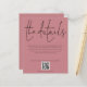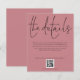 Detalhes do casamento: gabinete de Rosa Dusty de Script de Código QR. Um alternativo do preço do orçamento. Os envelopes são um extra opcional. Avise aos seus hóspedes os detalhes como instruções e informações de alojamento para o seu casamento quando enviar os convites. Este design elegante definiu na moda grande tipografia para o título Os detalhes e o resto do texto podem ser facilmente personalizados para as suas palavras juntamente com o seu código QR no website. Você pode escolher qualquer cor de sua escolha para o texto e as cores de fundo em ambos os lados, por meio da opção personalizar mais.