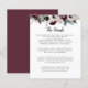 Este elegante cartão de informações para convidados em aquarela nas cores verde-sage, marfim, ameixa e verde-musgo apresenta uma moldura botânica de delicadas folhas de acanto, suculentas, flores de ameixa e anémonas marfim no topo do seu texto desejado. Perfeito para informar os convidados sobre acomodações de hotel, códigos de grupo, transporte, direções, informações de recepção de boas-vindas e o url do site do seu casamento.