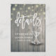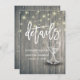 Direções de casamento / Alojamentos e Cartões de Informação / Cartões de Informação de Convidado / Cartões de Detalhes de Casamento - Modelos de Letra Elegante, Óculos de Champanhe Vintage e Luzes de String no Fundo da Madeira Rústica. Todo estilo de texto, cores, tamanhos podem ser modificados para ajustado das suas necessidades!