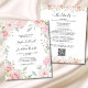 Orçamento Tudo em Um com Detalhes e Código QR Roses Rosa Sage Greenery Casamento Convite... Nosso convite floral para o casamento floral "All in One" inclui uma série de rosas cor-de-rosa pastel e um sábio verde folhado preparando seu texto de convite na frente do cartão. A parte de trás do cartão, bordada com rosas cor-de-rosa no topo e na parte de baixo, contém todos os detalhes que você normalmente veria em cartas separadas no pacote de casamento. Este convite de casamento ao estilo moderno foi concebido para ser elegante e consciente do orçamento... para não mencionar a poupança de tempo. No verso há também um modelo gráfico de código QR que você pode substituir facilmente digitando no seu próprio URL do site de casamento. Todo texto de exemplo pode ser facilmente revisado com suas próprias informações sobre o modelo de personalização. NOTA: o papel de cartão "Orçamento" não é o mesmo que os convites de cartão simples tradicionais. Nossos cartões de orçamento são de 4,5 x 5,6 polegadas feitos de papel semirbrilhante de 110 lb comparado com os tradicionais cartões planos de convite de casamento de 5 x 7 polegadas em papel mate de 120 lb. Além disso, os cartões de orçamento não vêm automaticamente com envelopes, assim como os cartões de convite tradicionais, mas você pode comprá-los na mesma página na saída, se desejar. Tudo isso em um design também está disponível em um tradicional cartão de convite de casamento 5x7.
