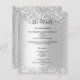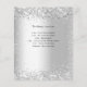 Um moderno e elegante programa/programa/cronograma de casamento. Um fundo com aspecto fino de prata decorado com brilho falso de prata, faíscas. Personalize e adicione seus nomes e detalhes do casamento. Letras pretas coloridas. Texto de ambos os lados. 1 folha = 1 programa impresso borda a borda.