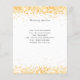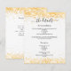 Um moderno e elegante programa/programa/cronograma de casamento. Um fundo branco decorado com confete de ouro falso. Personalize e adicione seus nomes e detalhes do casamento. Letras pretas coloridas. Texto de ambos os lados. 1 folha = 1 programa impresso borda a borda.