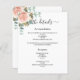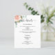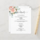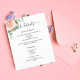 Um moderno e elegante programa/programa/cronograma de casamento. Um fundo branco, decorado com rosa dourado, rosa de cor aquosa e verde de eucalipto. Personalize e adicione seus nomes e detalhes do casamento. Letras pretas coloridas. Texto de ambos os lados. 1 folha = 1 programa impresso borda a borda.