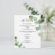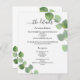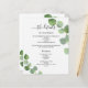 Um moderno e elegante programa/programa/cronograma de casamento. Um fundo branco decorado com verde de eucalipto, galhos. Personalize e adicione seus nomes e detalhes do casamento. Letras pretas coloridas. Texto de ambos os lados. 1 folha = 1 programa impresso borda a borda.