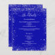 Um programa de casamento moderno e elegante/detalhes/cronologia. Um fundo azul real, decorado com faíscas de brilho prateado. Personalize e adicione seus nomes e detalhes do casamento. Letras brancas coloridas. Texto de ambos os lados. 1 folha = 1 programa impresso borda a borda.