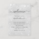Um programa de casamento moderno e elegante, linha do tempo. Fundo metálico de aspecto fino prateado decorado com pó falso de cinza prateada. Personalize e adicione seus nomes e detalhes do casamento. Letras pretas coloridas. Se você tiver mais texto, é possível reduzir o espaço na linha.