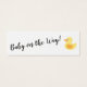 Aqui está uma opção divertida para seu planejamento de chás de fraldas neutro em relação a gênero e além! Usando uma fonte moderna, a declaração de um lado lê "Bebê no caminho!" Além disso, um gráfico que representa um pato de borracha amarelo brilhante decora a placa simples, de outra forma simples. Do outro lado, em uma fonte casual sans-serif, são portadoras do nome da mamãe a ser e para duas lojas onde ela está registrada. Todas as camadas foram deixadas destravadas para que você possa ajustar e personalizar como vê o ajustado. Por favor, não hesite em contactar se precisar de assistência. // Concebida por Melody Watson para Paper Muserie.