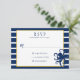 Os fundos azuis e listras brancas de marinho com uma estrutura em forma de ouro e um polvo azul marinho giro fazem com que estas placas RSVP de temas náuticos sejam do tipo único. Convidado de casamento. Se você quiser este design em um produto correspondente, ou quiser adicionar opções de menu, entre em contato comigo através da minha loja. Fico feliz em ajudá-lo de qualquer forma.