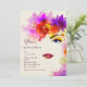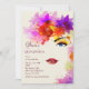 Um convite impressionante que caracteriza uma vista parcial da cara de uma mulher cercada com lotes do brilho, flores coloridas.