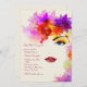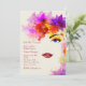 Um convite impressionante que caracteriza uma vista parcial da cara de uma mulher cercada com lotes do brilho, flores coloridas.