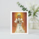 Santo de Vintage Lucia em seu vestido branco e carregares de halo de vela uma bandeja de bebidas quentes e pães de açafrão.