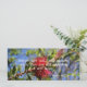 Este cartão mostra uma flor vermelha de pincel de garrafas começando a florescer no sol da primavera. O verso Bíblia na frente é de Isaiah 65:24 que diz, "Antes que eles chamem eu responderei; enquanto eles ainda falam, eu ouvirei." Um dos fundos é a mesma imagem e as palavras, "Deus te ouve."