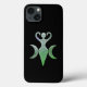 Uma bela Deusa Espiral entre duas luas em crescente, criando uma Deusa Tripla. Ela aparece como se fosse feita de vidro fosco em tons de verde, e uma braçadeira tribal roxa. A Deusa Tripla representa os três ciclos da feminilidade: A Maiden, A Mãe e o Coroa.
