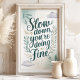 Encontre serenidade e aceite o momento presente com esta impressão de arte chamada "Devagar, Você Está Fazendo Bem". Apresentando um roteiro elegante rodeado por delicadas folhas e nuvens de aquarela, esta peça serve como um lembrete gentil para pausar, respirar e apreciar as simples alegrias da vida. Perfeito para adicionar um toque de tranquilidade ao seu quarto, sala de estar ou espaço de trabalho.