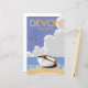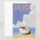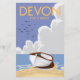 Devon para uma pausa. Belo estilo vintage poster de viagens de arte impressão de um retrô estilo bi-plano vermelho sobrevoando a paisagem.