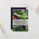 Fotografia simples e natural de pansy e dewdrop. Design no convite de placa vertical com retângulo branco semitransparente para o seu texto em fundo frontal e roxo atrás com textos para a Celebração da Vida a serem personalizados. Você pode facilmente alterar o texto (fonte, cor, tamanho e posição - frente e verso) e a cor de fundo (traseira) clicando no botão personalizar. Correspondente ao livro de hóspedes do cobrir do duro.