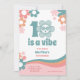 Convite de festas Único de 10 aniversários! Com um design '10 é um Vibe', este convite retro-denominado aniversário encapsula o espírito alegre de uma década vivida ao máximo. Cada convite ostenta uma design de margarida legal e sorridente, perfeitamente combinada com letras retrorreflectoras vibrantes que fazem uma declaração excitante. O tema '10 é um Vibe' é certamente o de trazer um sorriso nos rostos de todos e estabelecer o clima para uma comemoração cheia de diversão. Personalize este convite online com todos os detalhes do seu grande dia. Disponível para comprar impressões ou fazer o download do convite digital para um anúncio de evento rápido, fácil e bonito. Design original do Ana Garza/Kardz Studio. Se tiver alguma dúvida, por favor, sinta-se à vontade para me contactar através do Zazzle Chat.