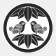 Este design KAMON é chamado de "Chuwa-ni jumai-sasa-ni mukai suzume" no Japão. Pardal é um mensageiro para chamar Deus, a folha de bambu é uma ferramenta que pode levar a Deus.