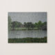 Esta quebra-cabeça apresenta uma obra de arte original de uma cena ao lado de cinzas e lacaios chuvosos criada em Vue d'Esprit pela artista Jayne Wilson. Uma família de patos atravessa o lago à medida que as gotas de chuva caem. Uma ponte de pedra leva a uma cabana no extremo do lago.