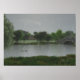 Esta poster apresenta uma obra de arte original de uma cena ao lado de cinzas e lacaios chuvosos criada em Vue d'Esprit pela artista Jayne Wilson. Uma família de patos atravessa o lago à medida que as gotas de chuva caem. Uma ponte de pedra leva a uma cabana no extremo do lago.