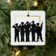 Este ornamento é para o Dia das Forças Armadas ou o Dia de Apreciação Militar, ambos no terceiro sábado de maio. Isto mostra todos os 5 ramos representados em soldados da silhueta preta para cada um: Marinho, Guarda costeira, Fuzileiros, Força Aérea e Exército. Você está livre para personalizar este ornamento, no entanto, para outro propósito. Todo o texto pode ser excluído ou editado e alterado. Desenhado por Sheila Cicchi, Brownielocks.com. Todos os Direitos Reservados. NOTA: devido ao estilo, este design só pode ser adquirido em ornamentos em formato SQUARE.
