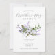 Convite para celebração de Dias de as mães elegante com ilustração aquosa de lírios brancos e lavanda com verde.
