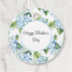 Esta etiqueta de presente é mostrada em forma redonda com uma adorável impressão floral azul hydrangea. Texto: Dia de as mães Feliz Personalize este item ou comprar como está.