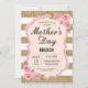 Dia de as mães De Peões Rosa Floral, Convite Brunch. Dourada Glitter. Chic Floral de Flor de Água. Douradas Listras Brancas e Listras. Cor Floral da Aquarela. Digital Imprimível.