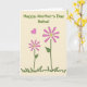 Cartão de dia de as mães com duas flores roxas representando Baba (avó) e criança.